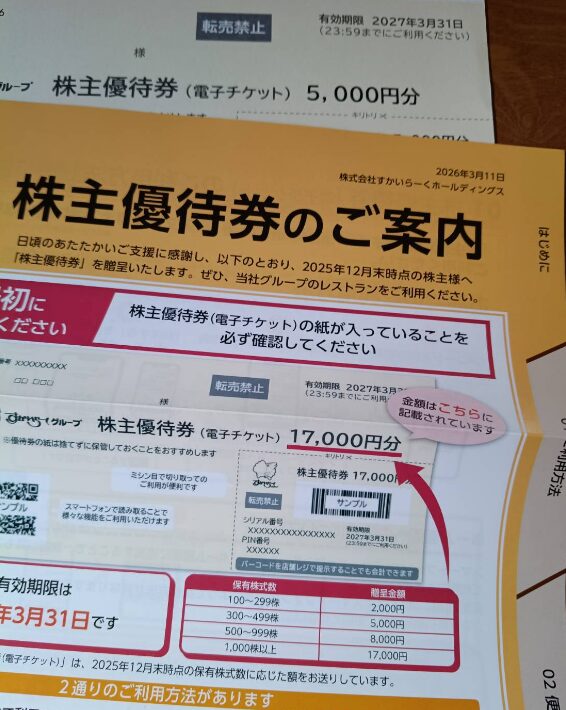 3197すかいらーくホールディングスから12月優待の株主優待が到着しました。