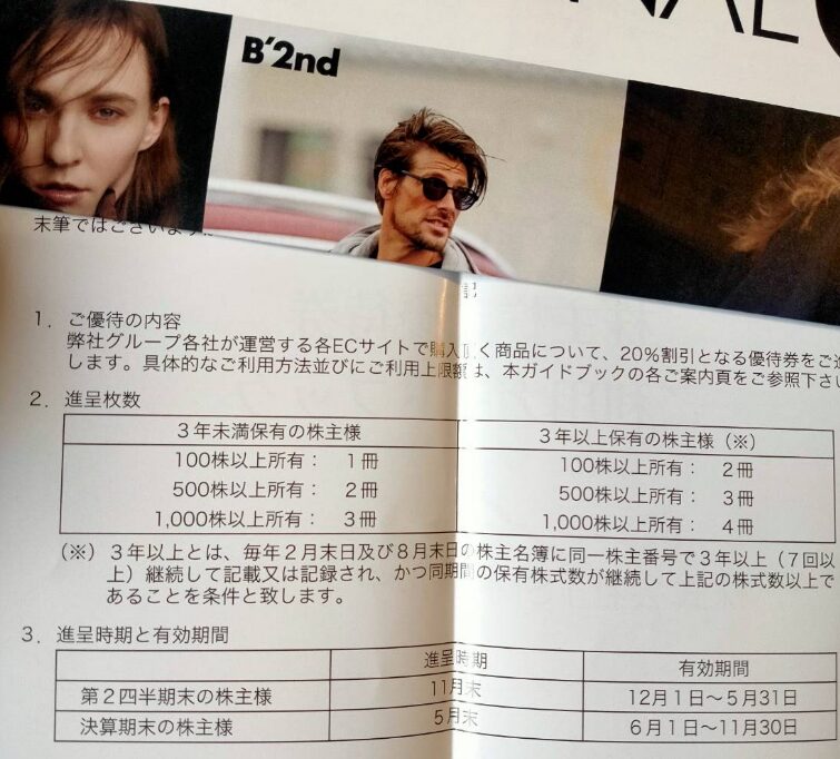 優待はグループ会社運営の各ECサイトで使える20%割引券です。(※利用上限額30~40万円まで)