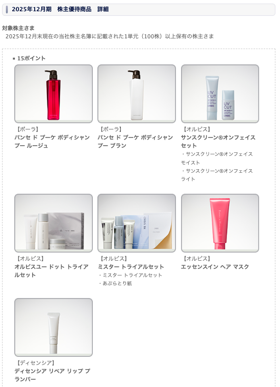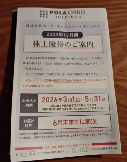 4927ポーラ・オルビスホールディングスから12月優待の申込案内が届きました。