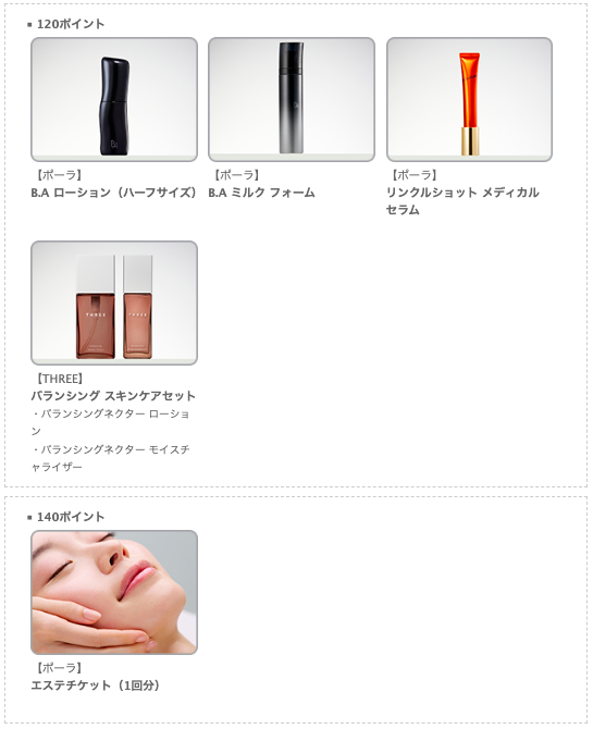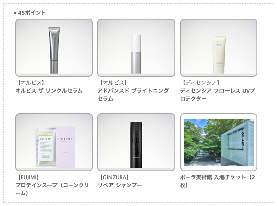 保有ポイントに応じて、自社グループ商品等含むラインアップからお好きな商品と交換