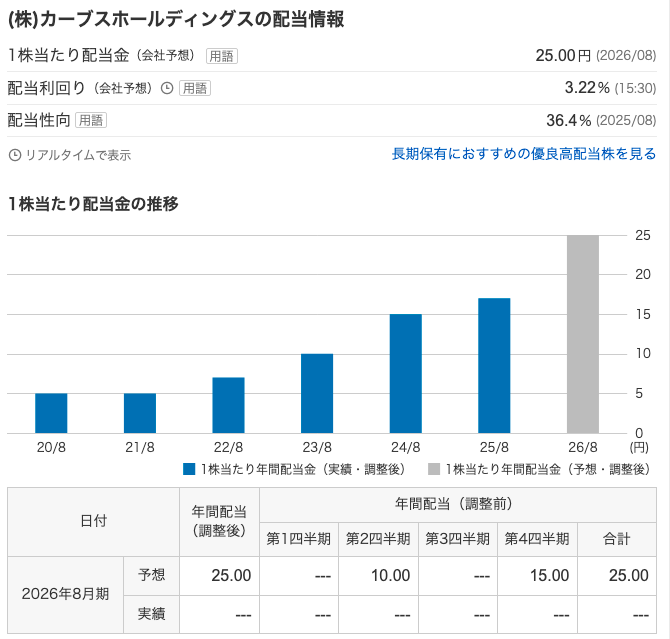 配当は25円、100株で2500円です。