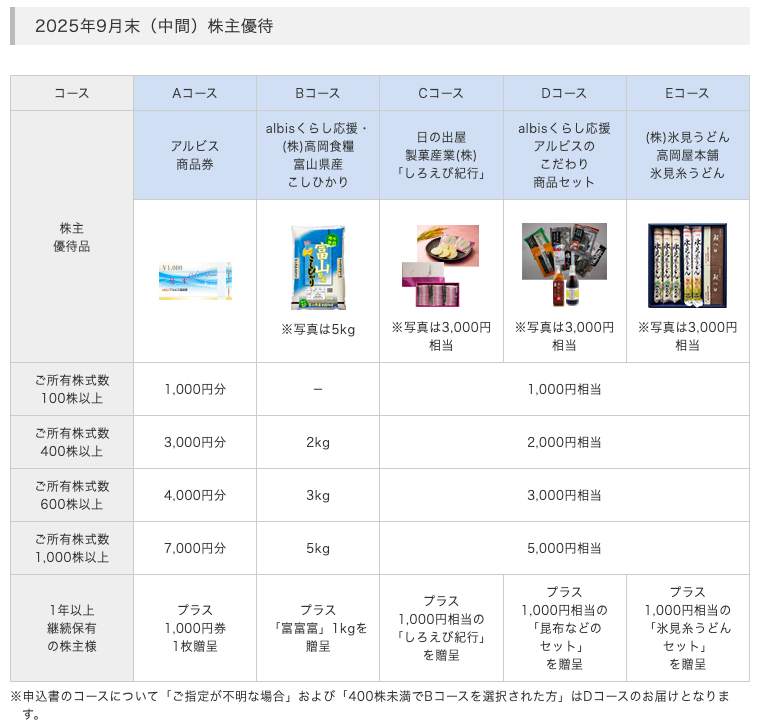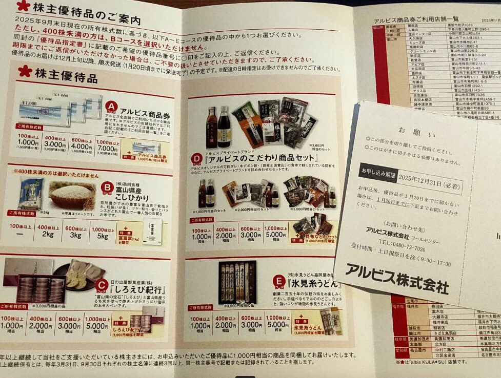 11月25日、7475アルビスから9月優待が到着しました。