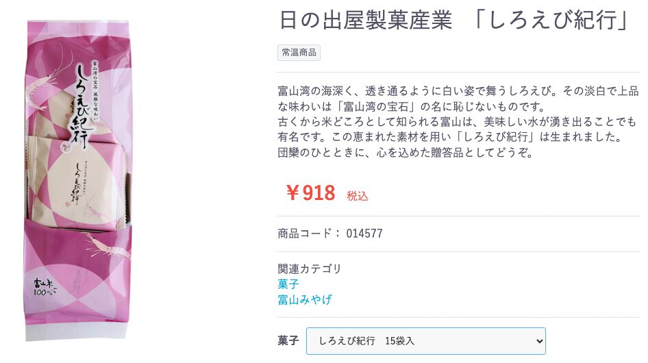 Cコースの日の出屋製菓産業さんの「しろえび紀行」は値段相当の商品っぽいです。