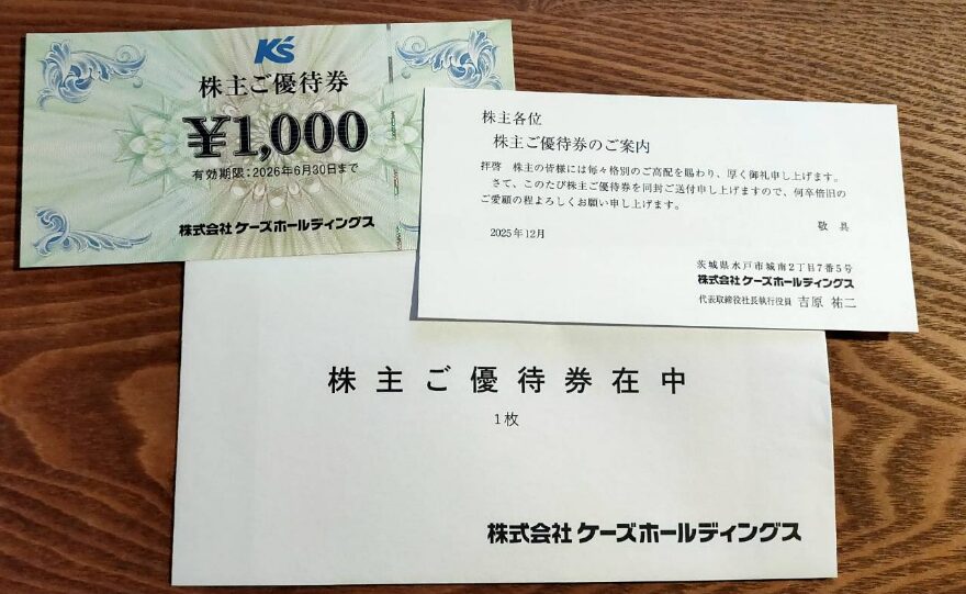12月8日、8282ケーズホールディングスから9月優待が到着しました。