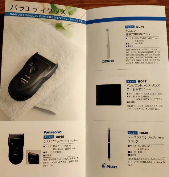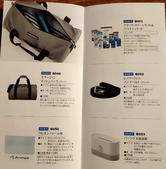なお、カタログギフトは会社のWebサイトにはなく、同封されている案内パンフレット内にしか記載ありません。
