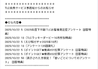 注事項はTLCポイントには期限があるので優待でポイントが付与されたら早めに期限のない電子マネーに交換しておくことです。