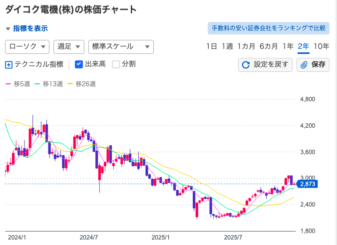 配当はちょうど1株100円、一時はかなり下がりましたがここ半年ぐらいで戻ってきました。