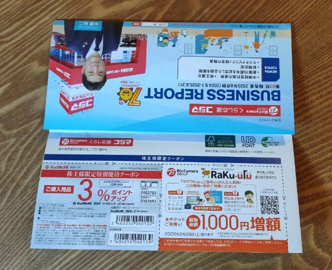 コジマの優待券はお釣りは出ませんが数百円からの商品もあるので使いやすですし、メルカリ等でもあまり値落ちせずに売れます。