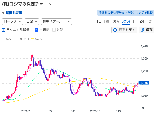 株価に対して優待利回りがいいので100株だけですが一生一緒にコジマです。