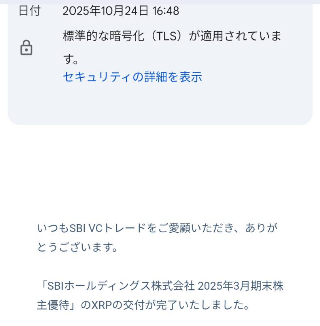 SBI証券の優待であるXRP(リップル)が口座に付与されたとメールで案内が届きました。