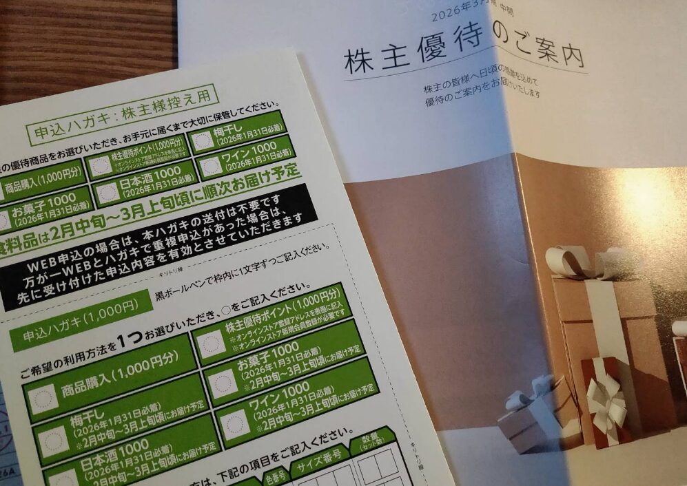 100株で1000円相当の自社取扱製品かオンラインショップで使えるポイントかを選びます。