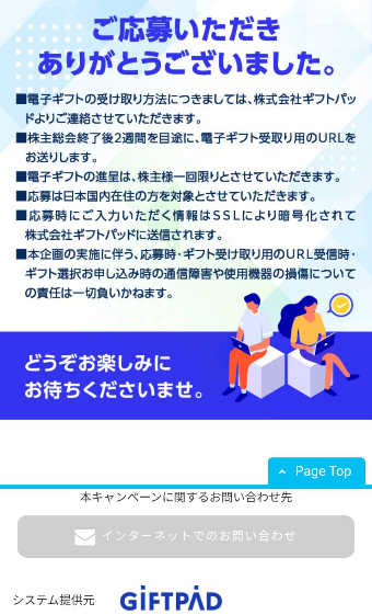 決議権を行使すると500円分の電子マネーギフトかQuoカードが謝礼としていただけるようです。