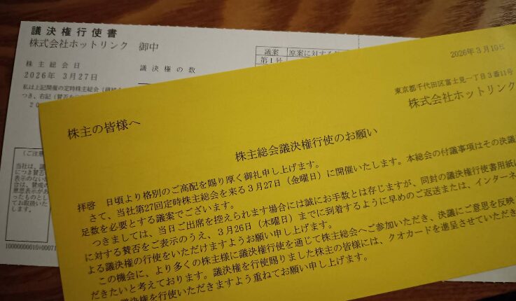 3680ホットリンクから議決権行使の案内がありました。