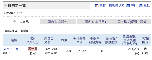 2025年12月10日の売買です。