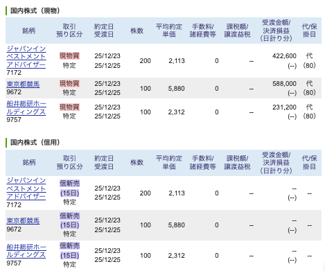 12月優待銘柄の7172ジャパンイベントアドバイザー、9672東京都競馬、9757船井総研ホールディングスをクロスしました。この時期にも在庫のあるそれほど優待利回りが高くない銘柄です。