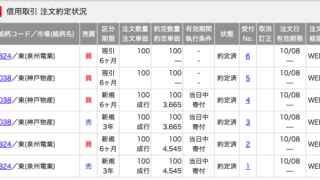 10月 2025年10月8日(9824泉州電業、3038神戸物産) 10月8日今日の売買です。クロスの手数料が安いSMBC証券で10月優待狙いで9824泉州電業、3038神戸物産をクロス取引しました。クロス取引約定後、すぐに信用買の分は現引して現物保有にしています。10月はクロスできる優待が少ないです。SB... 2025.10.08 10月クロス取引売買記録投資株主優待