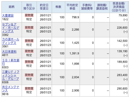 優待狙いの2930北の達人コーポレーション、1822大豊建設、3382セブン&アイ・ホールディングス、3561力の源ホールディングス、4611大日本塗料、9616共立メンテナンスは優待と配当をもらいながら株価上昇を狙って入りました。
