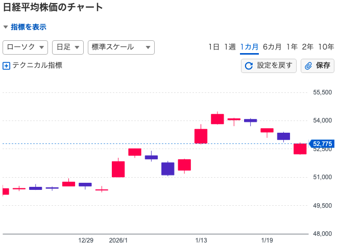 日経平均は大発会から上昇してきましたが今週はトランプ大統領がアイスランド購入について反対するEU諸国への追加関税を発表したことで少し落ちてきました。