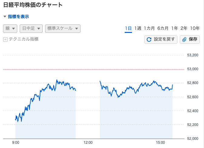 朝イチは米国市場が3連休明けに大きく下落したこともあって寄りは−800円超えで下落していましたが徐々に値を戻して引けには−216円ほどに収束しました。