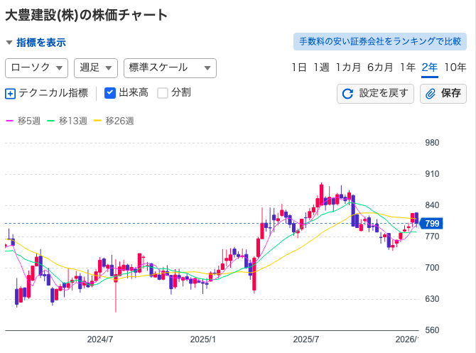 1822大豊建設は3月末日・9月末日にQuoカードがもらえ、配当も4%以上あります。