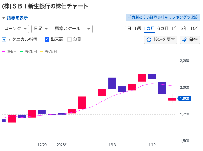 8303SBI新生銀行は昨年12月17日に上場し、年明け大発会から上昇し続けていました。