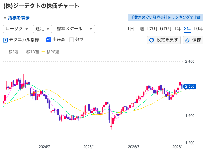 ジーテクは以前100株持っていました。購入したきっかけは87歳、現役トレーダーシゲルさんが紹介していたことがきっかけですが途中で利確してしまいました。その後はさらに上昇しています。