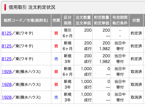 前日でも在庫があったのでクロスしようとしたのですがSMBC証券の現金が1000株分もないので諦めました。本日が権利確定日の場合、信用買してからの本日中に現渡で現物を持っておく必要があります。もし現金不足になった場合、仕事中に振込とか難しいため、キャンセルしました。