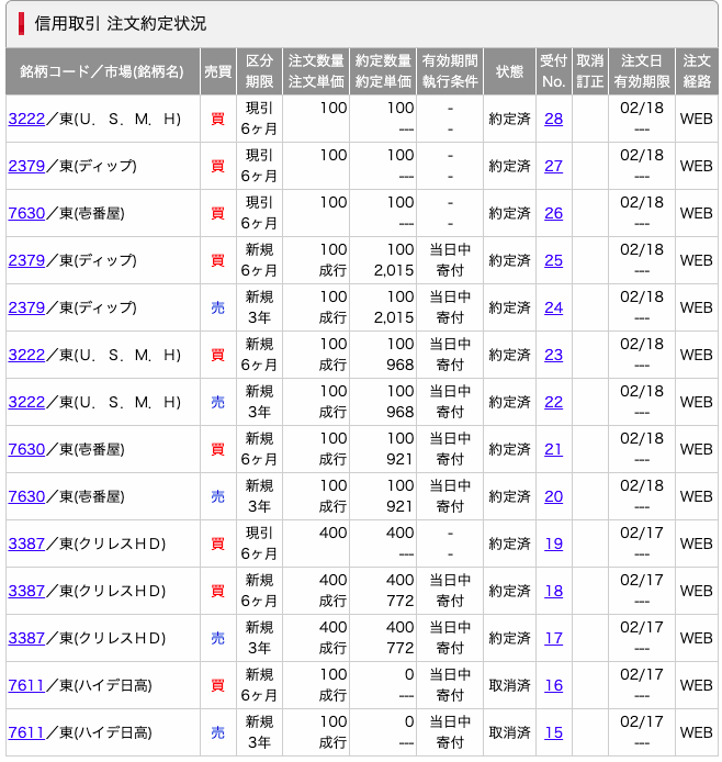 ほとんどが優待目的のクロス取引です。