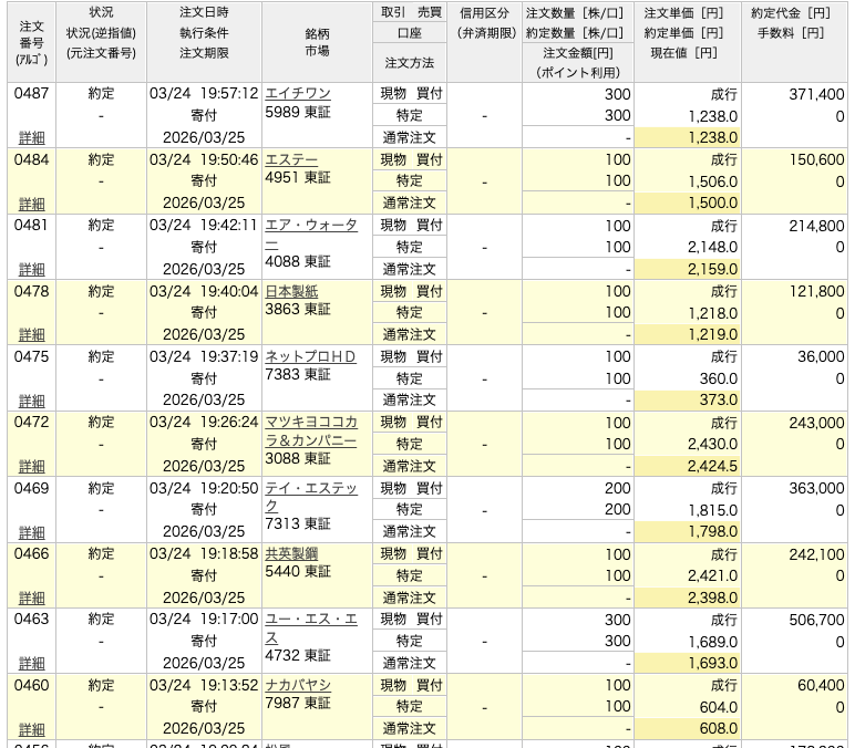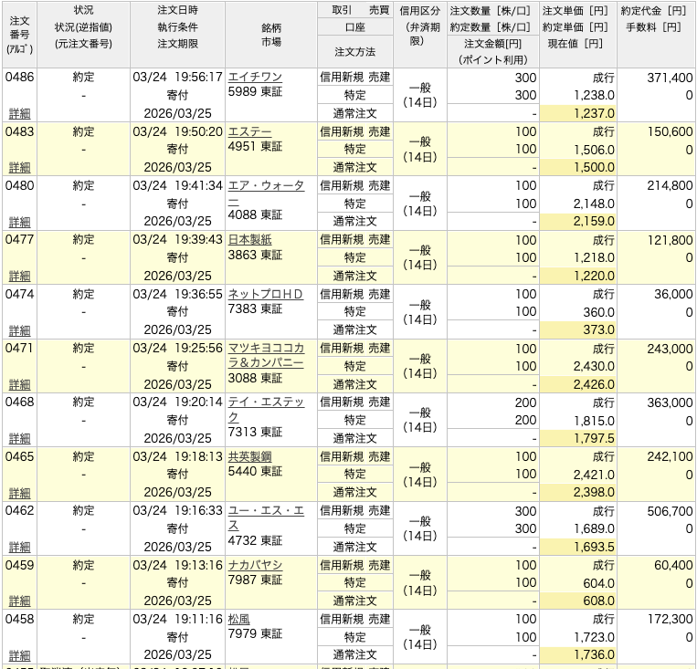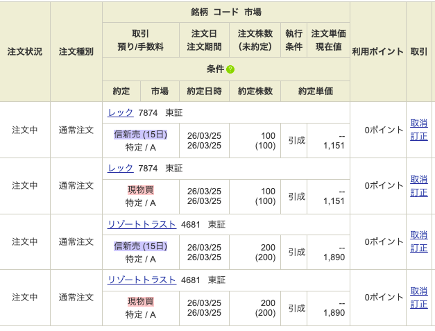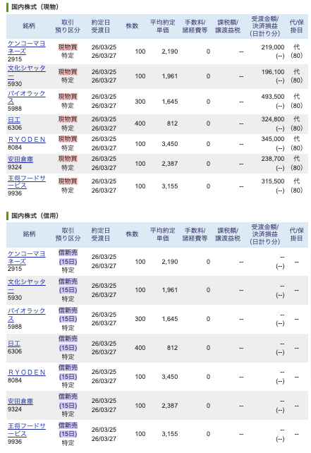 2026年3月25日(クロス取引)