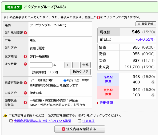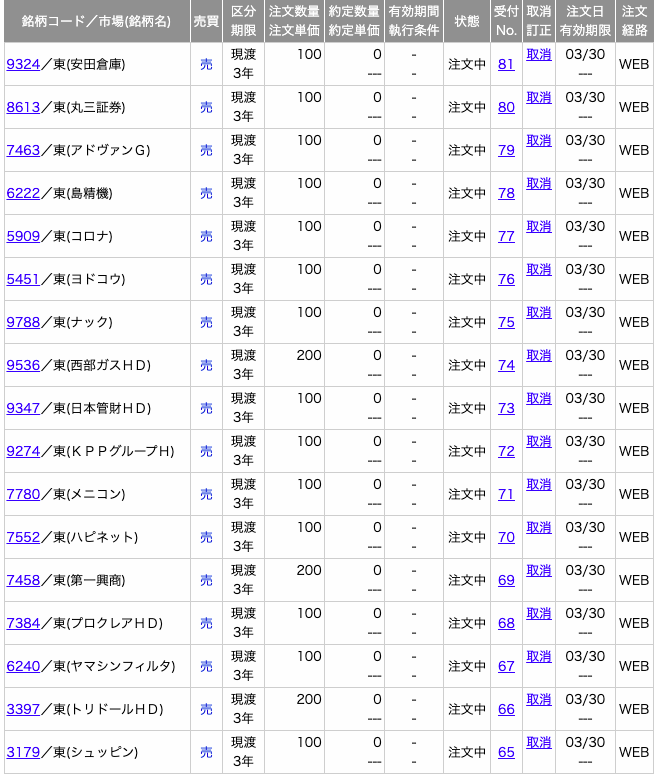 とりあえず現渡できる銘柄は全て現渡注文します。